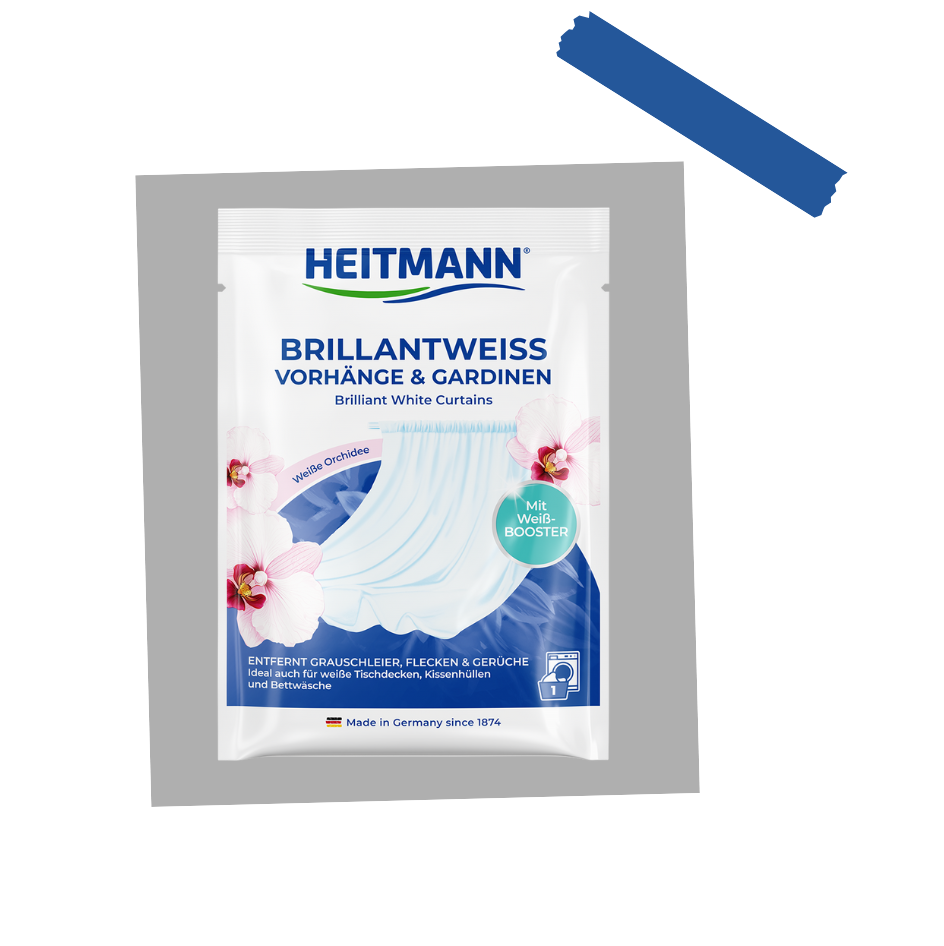 Mit unserem Waschzusatz gehören vergilbte und grau gewordene Gardinen der Vergangenheit an. HEITMANN Brillantweiß Vorhänge & Gardinen wurde speziell entwickelt, um hartnäckige Vergrauungen effektiv zu entfernen und dabei das strahlende Weiß Ihrer Gardinen zu bewahren. Die innovative Formel dringt tief in die Fasern ein, löst den Schmutz und lässt Ihre Gardinen wie neu aussehen.