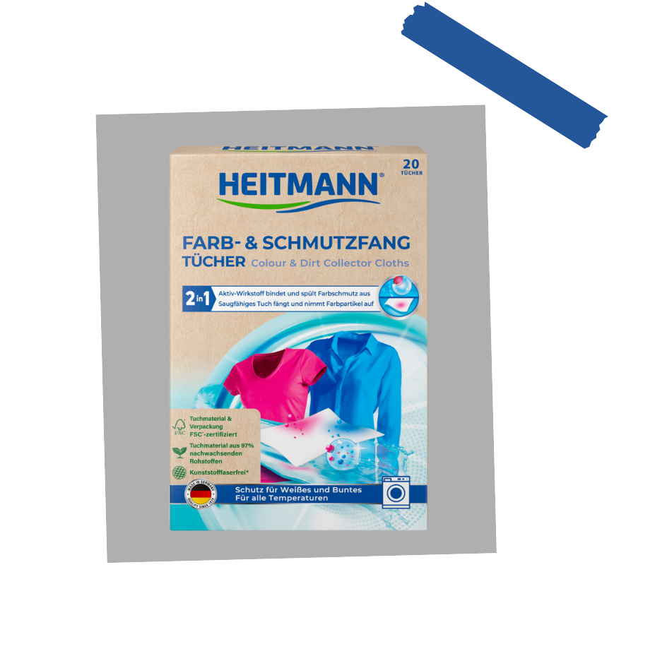 Beim Waschen kann es schnell passieren: Farben übertragen sich auf andere Kleidungsstücke, und plötzlich sind deine weißen oder hellen Textilien ungewollt verfärbt. Mit den HEITMANN Farb- und Schmutzfangtüchern gehört dieses Problem der Vergangenheit an. Diese innovativen Tücher sorgen dafür, dass Farben und Schmutzpartikel während des Waschens effektiv aufgefangen werden, sodass deine Wäsche strahlend sauber und frei von Verfärbungen bleibt.