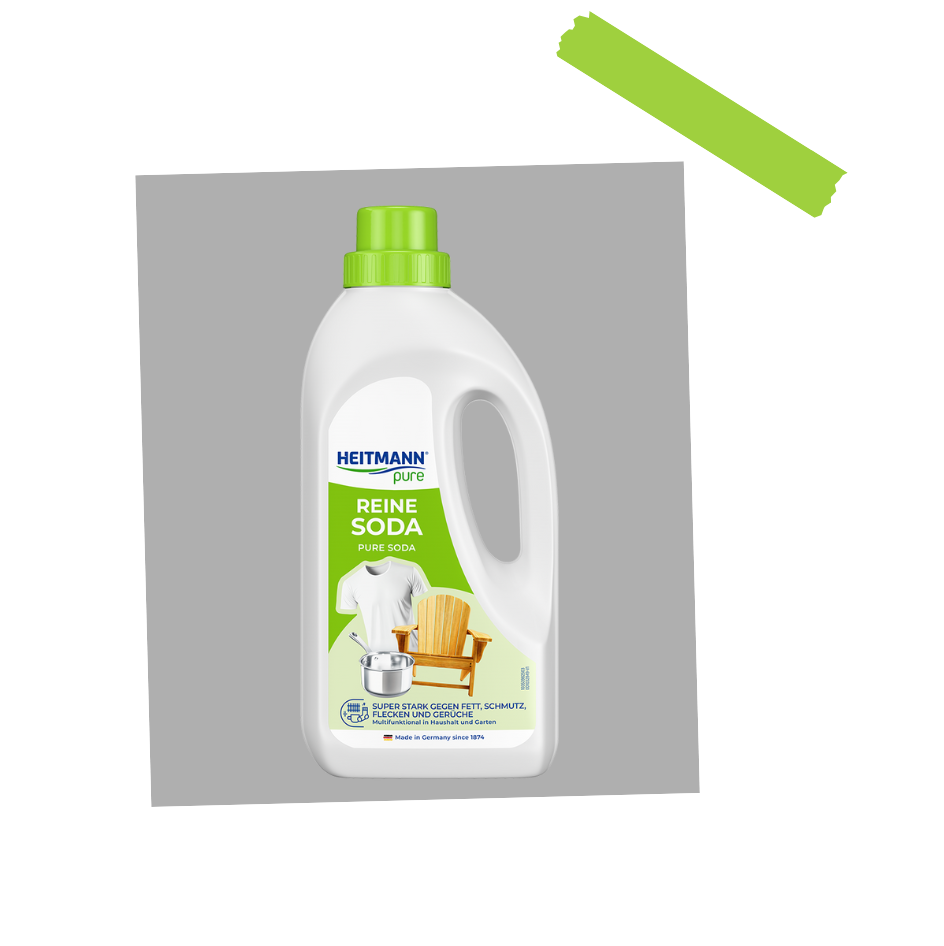 Mit HEITMANN pure Reine Soda, bereits vorgelöst und sofort einsatzbereit, bringst du mühelos vielseitige Sauberkeit in deinen Haushalt und Garten. Diese flüssige Soda ist ein bewährtes Hausmittel, das Fett, Schmutz, Flecken und unangenehme Gerüche effektiv entfernt. Ob bei der Wäschepflege, Geschirrreinigung, oder der Reinigung von unlackierten Korbwaren und Oberflächen – HEITMANN pure Reine Soda sorgt für lebensmittelgerechte Sauberkeit und hygienische Reinheit. Auch hartnäckige eingebrannte Reste auf Töpfen und Backblechen lassen sich mühelos entfernen. Im Garten befreist du Steinplatten, Holzzäune und Gartenmöbel von Grünbelag und Kalkrändern. Die umweltfreundliche Soda, die aus dem natürlichen Mineral gewonnen wird, lässt sich dank der praktischen Dosierkappe leicht und bedarfsgerecht anwenden.
