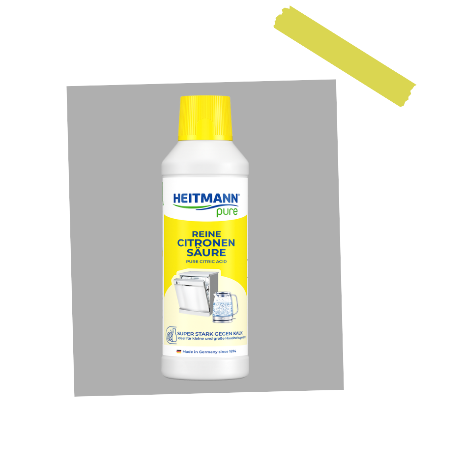- Mischen: Verdünne 1/2 Tasse (je nach Gerät) der HEITMANN pure Reinen Citronensäure mit 500 ml Wasser.
