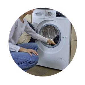 1. Trockenen, sauberen Stoff in die Waschmaschine / den Toplader geben. Den Beutel der Textilfarbe simplicol Back to Black aufschneiden und direkt auf die Textilien in die Trommel stellen.