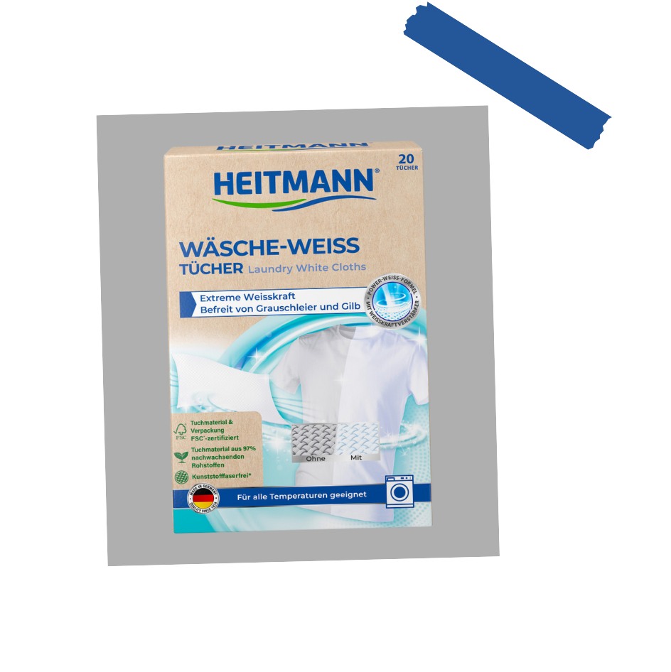 Und das Beste daran? Die HEITMANN Wäsche-Weiß Tücher sind nicht nur effektiv, sondern auch nachhaltig. Hergestellt aus FSC-zertifizierten Materialien, bieten sie eine umweltfreundliche Lösung für makellose Wäsche. Halte deine weißen Lieblingsstücke länger wie neu – ganz ohne Aufwand.